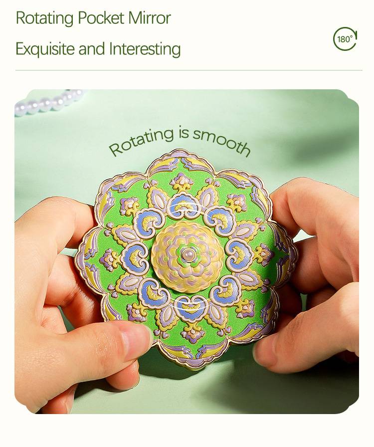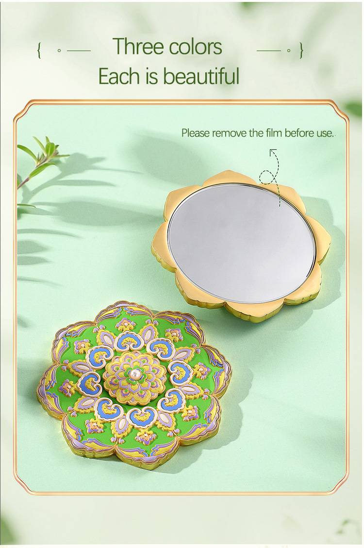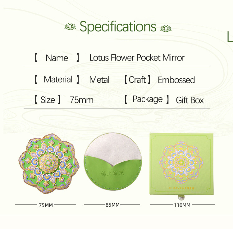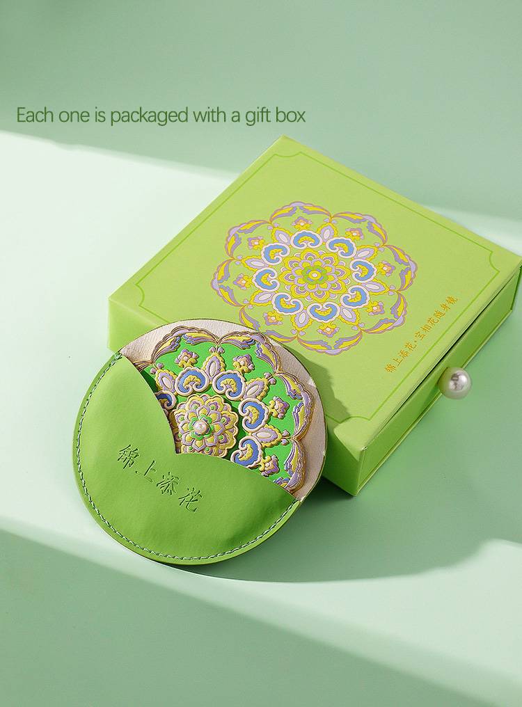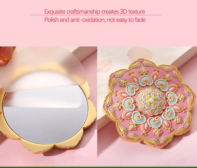 Source Factory Design Embossed Craft Metal Pocket Cosmetic Mirror with Gift Box